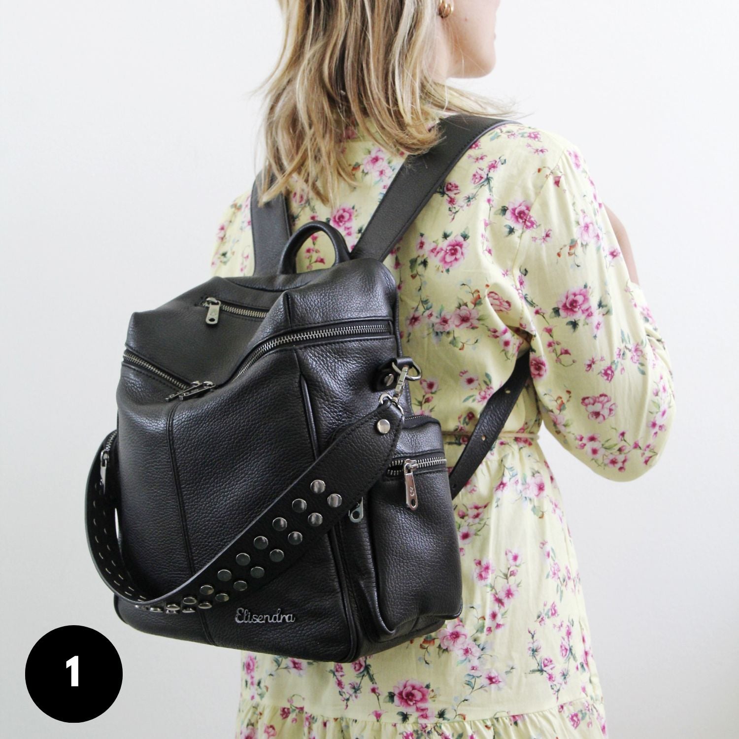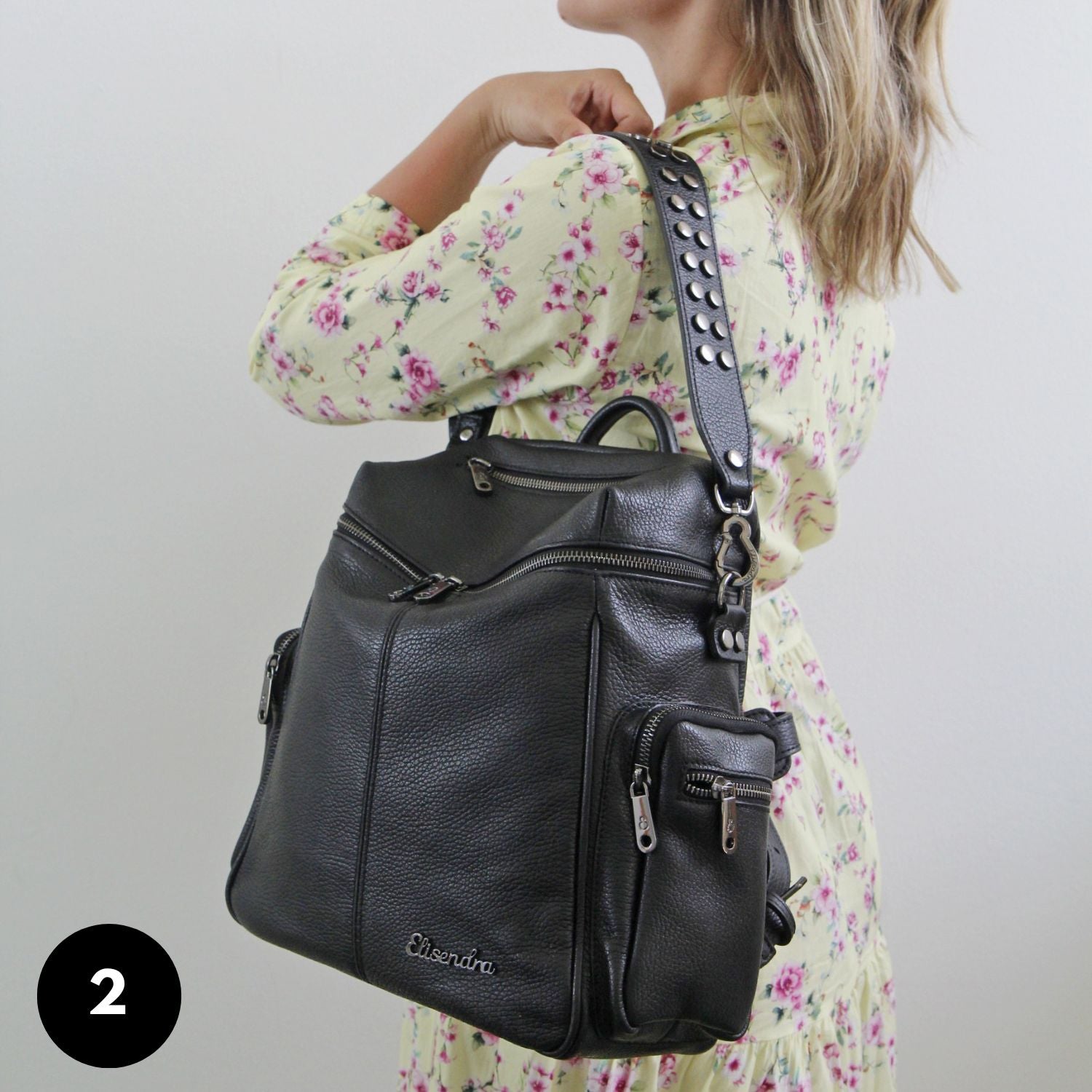 - Spallacci ergonomici e tracolla borchiata per doppio indosso